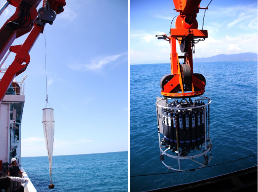 此外,在船上授课教师的带领下,师生们还学习到海洋水文气象、海洋生物和海洋化学等方面的海洋调查知识,并参加了CTD探测与样品采集,浮游生物拖网采集,不同水深PH值、溶解氧、营养盐和有机碳测定等实验操作,全面提升了对于海洋观测的认知水平和实践能力。